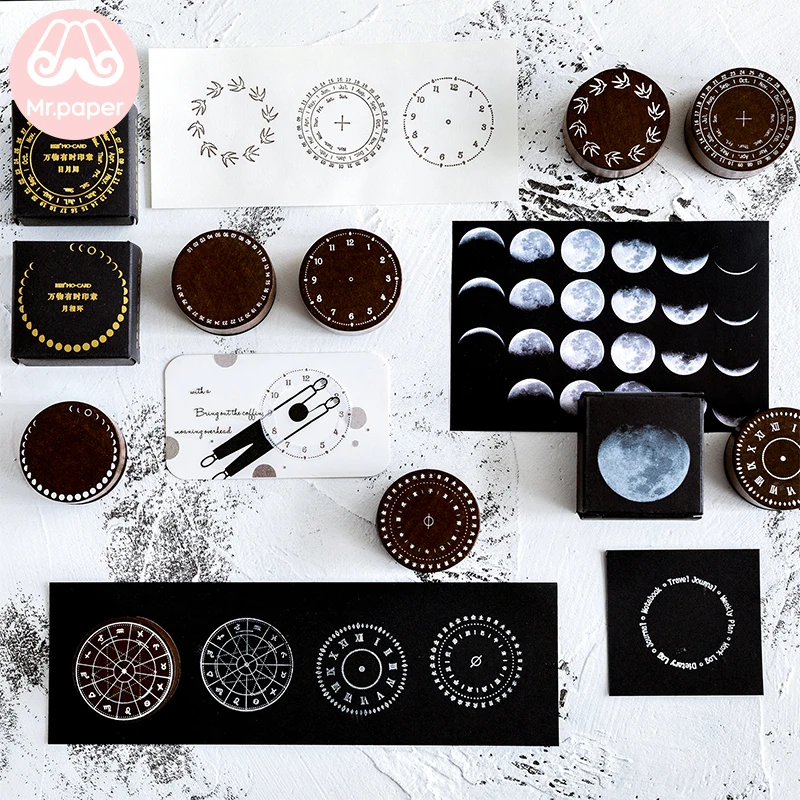 - Product name : Mr Paper 9 Designs Vintage Retro Roman Numerals Clock Wooden Rubber Stamps for Scrapbooking Deco Cr