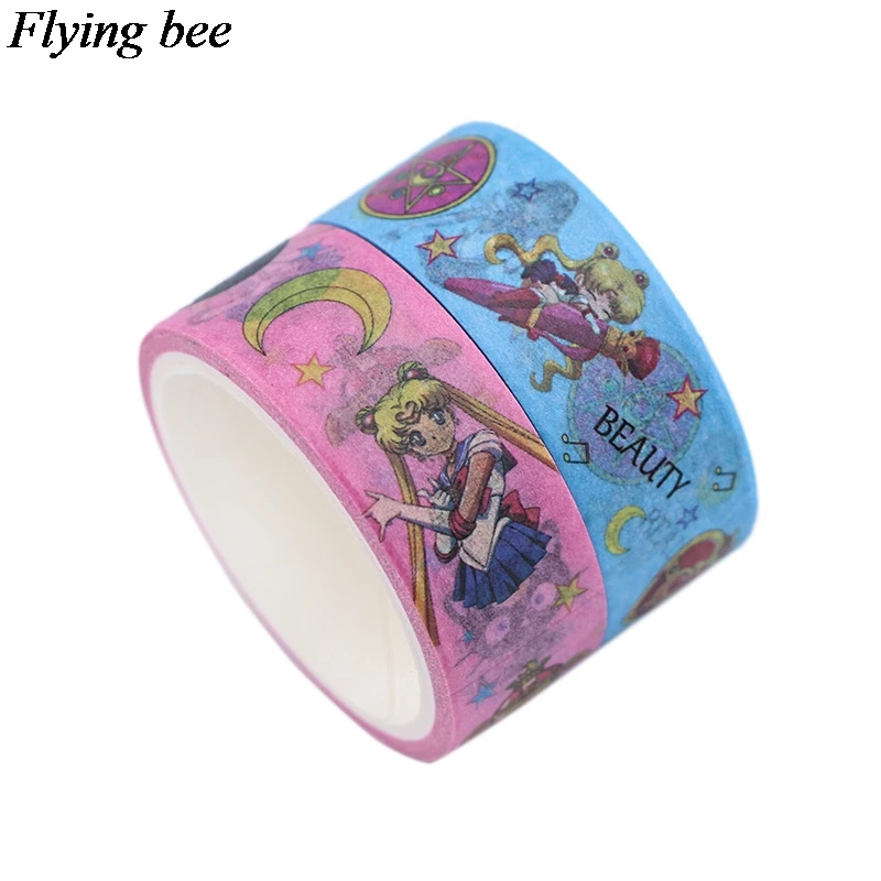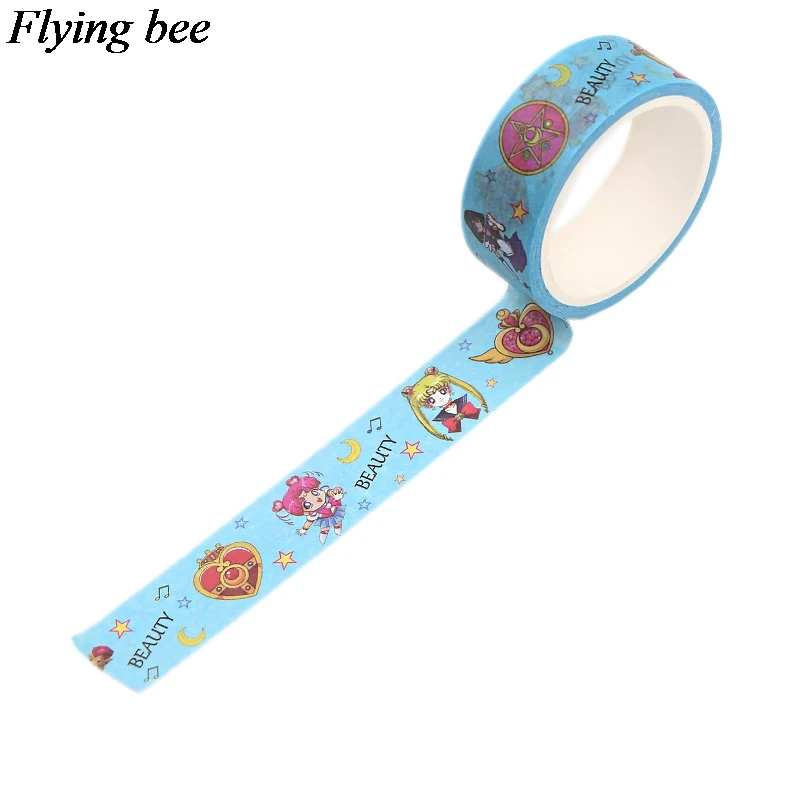 JUST FOR YOU Flyingbee 15mmX5m Girls Paper Washi Tape Cartoon cute Adhesive Tape DIY Decorative girls Masking Ta